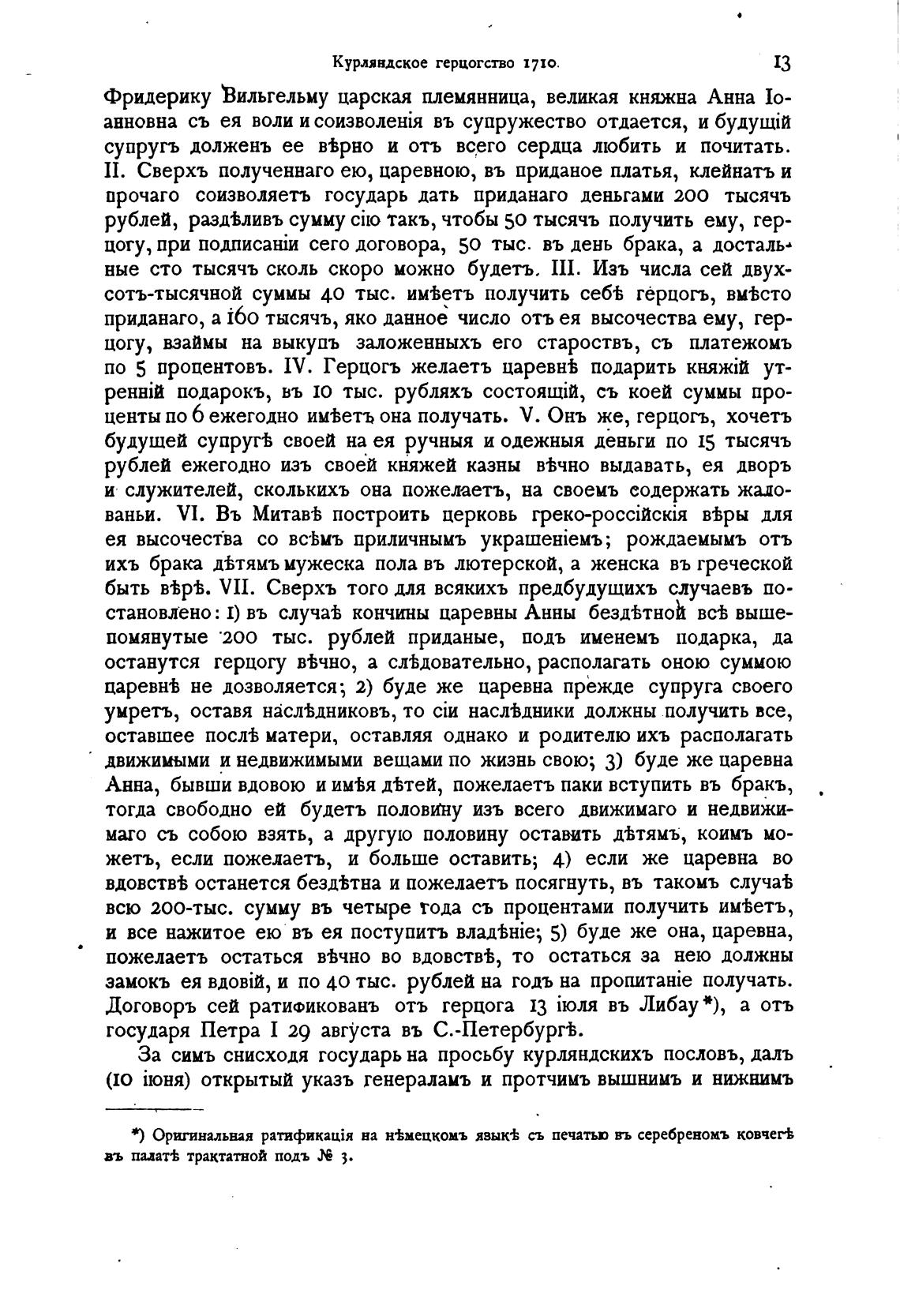 Договоръ сей ратификованъ отъ герцога 13 въ Либау*), а отъ