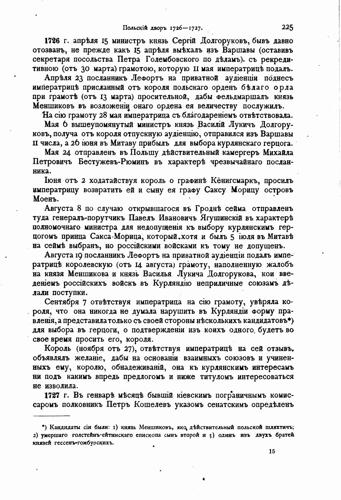 * ) Кащаидаты были: 1) князь Меншиковъ, д±йствительный польской шляхтичъ;