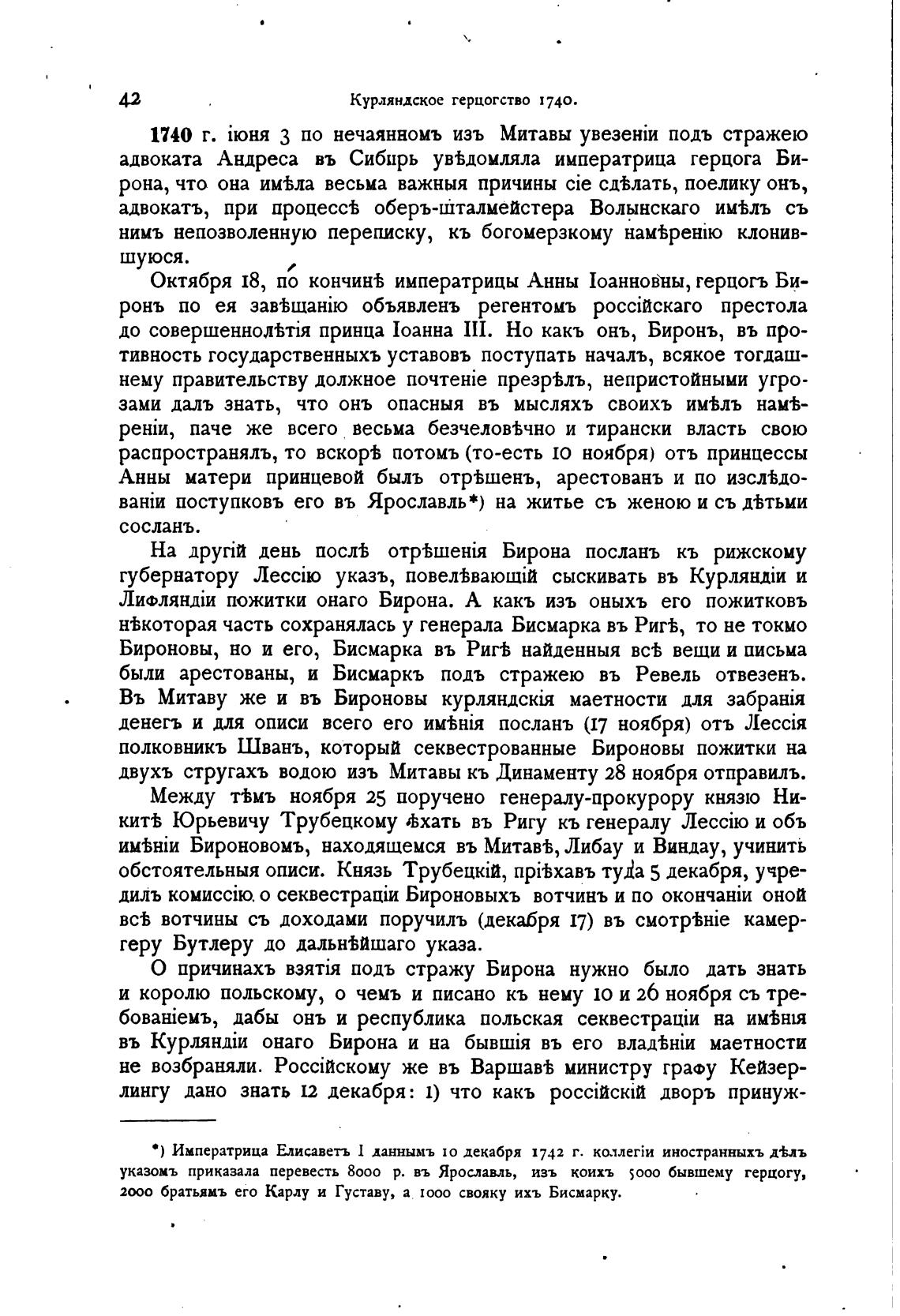 1740 г. З по нечаянномъ изъ Митавы подъ стражею