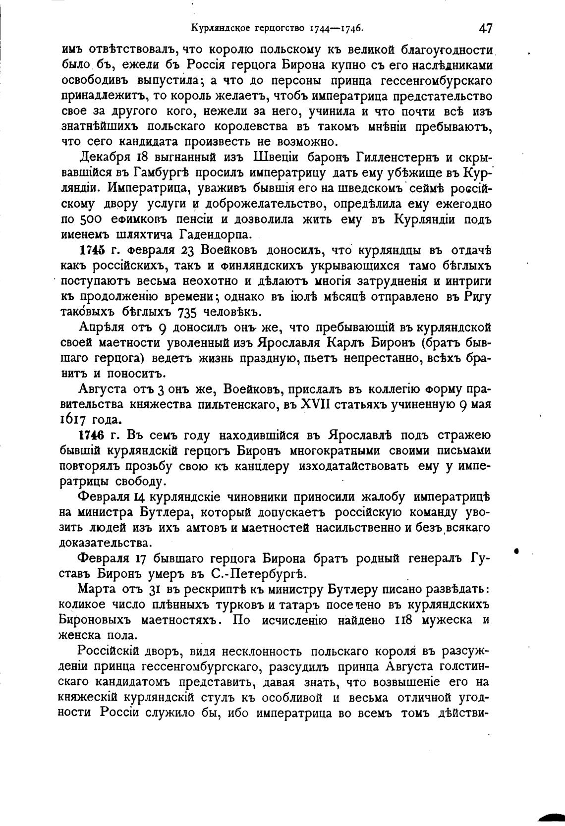 1745 г. Февраля 23 Воейковъ доносилъ, что курляндпы въ отдач±
