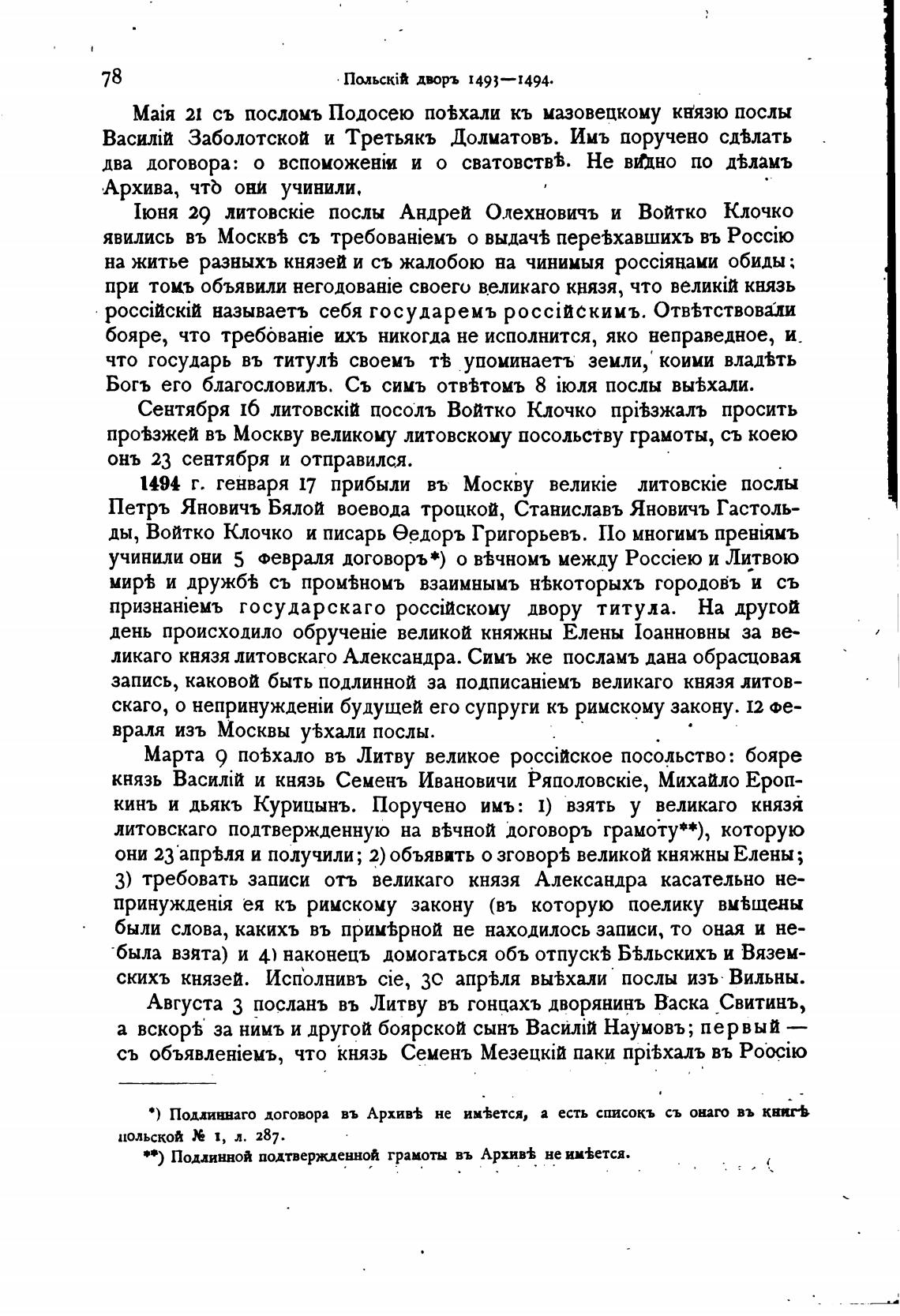 скихъ князей. Исполнивъ cie, 30 апрЬля вы±хали послы изъ Вильны.