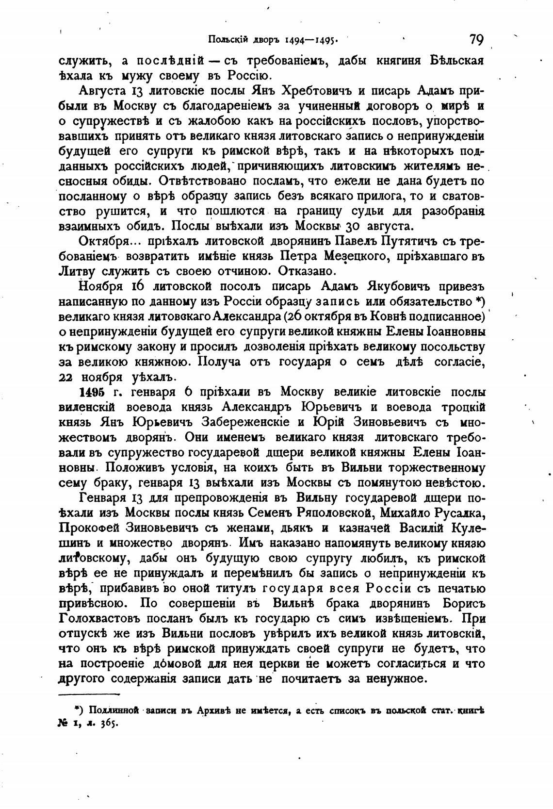 в) Подлинной •ваписи въ Архи“ не им±ется, а есть списокъ въ польской стат. книг±