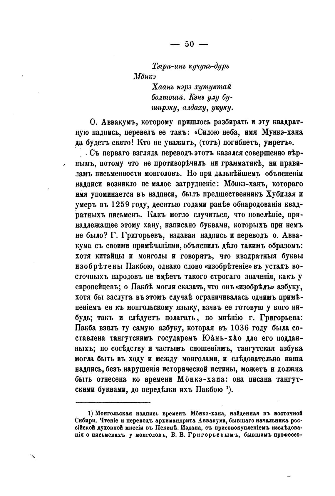 ную надпись, перевелъ ее такъ: «Силою неба, имя Мункэ-хана