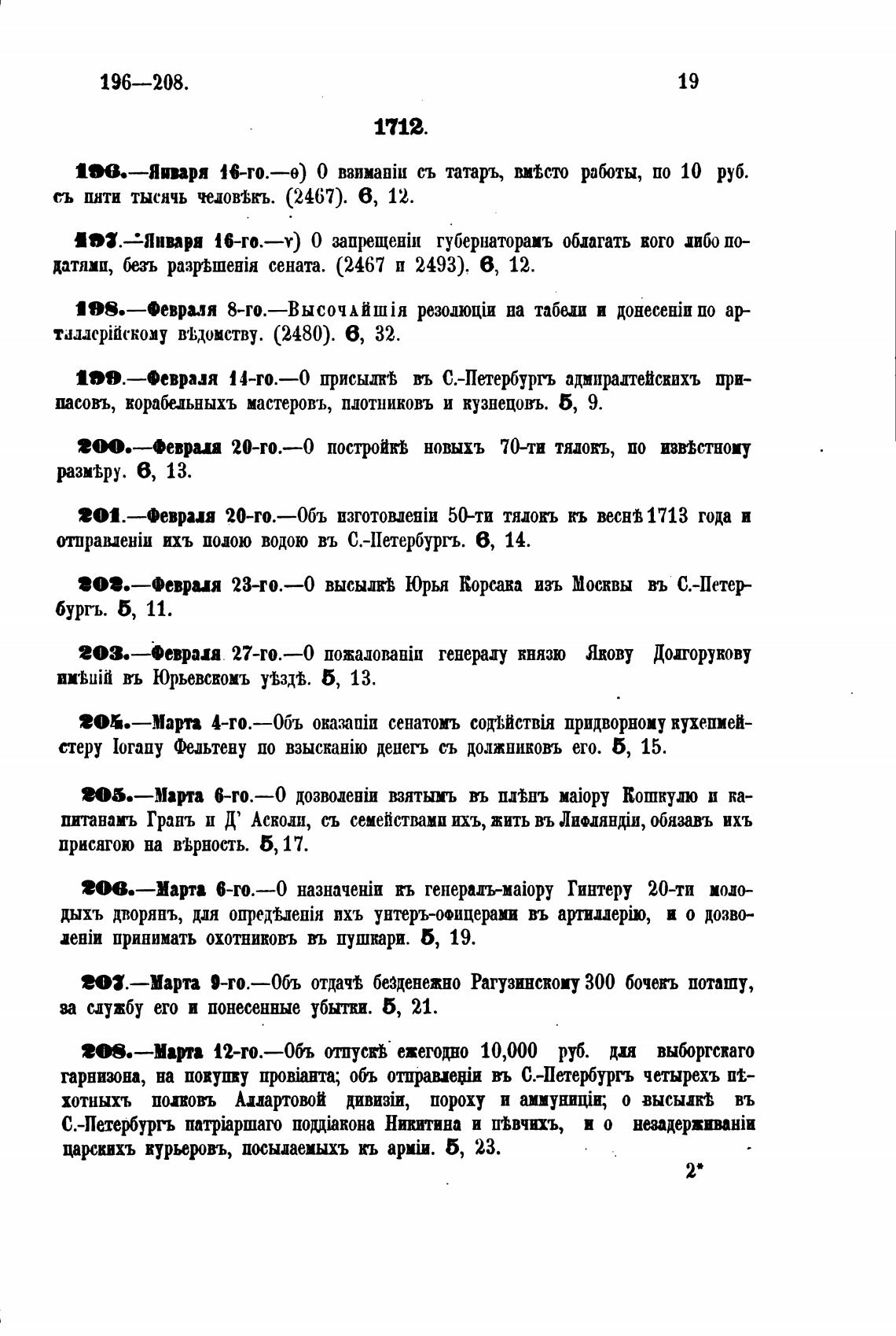 201.—Феврия 20-го.—06ъ 50-ти ТЯДОЕЪ кь веснј 1713 года и