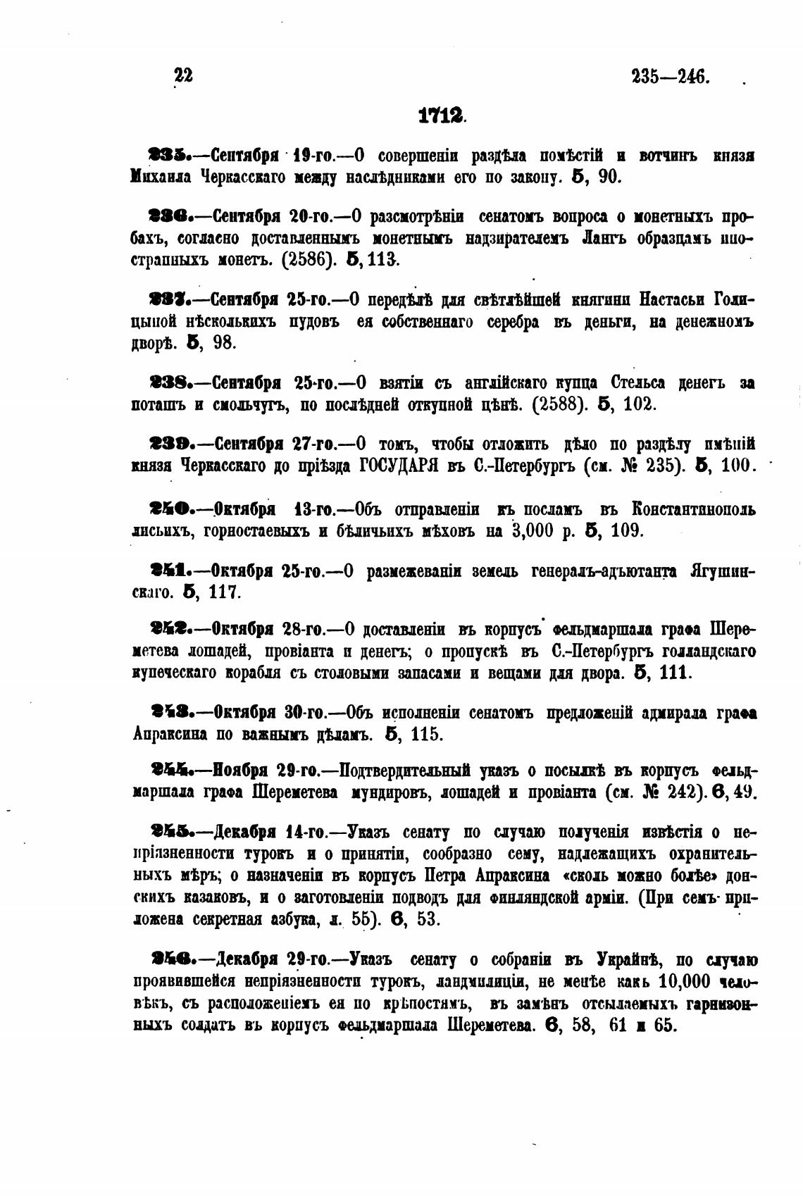 князя Черкасскаго до прњзда ГОСУДАРЯ вь С.-Пет"рљ (см. 235). б,
