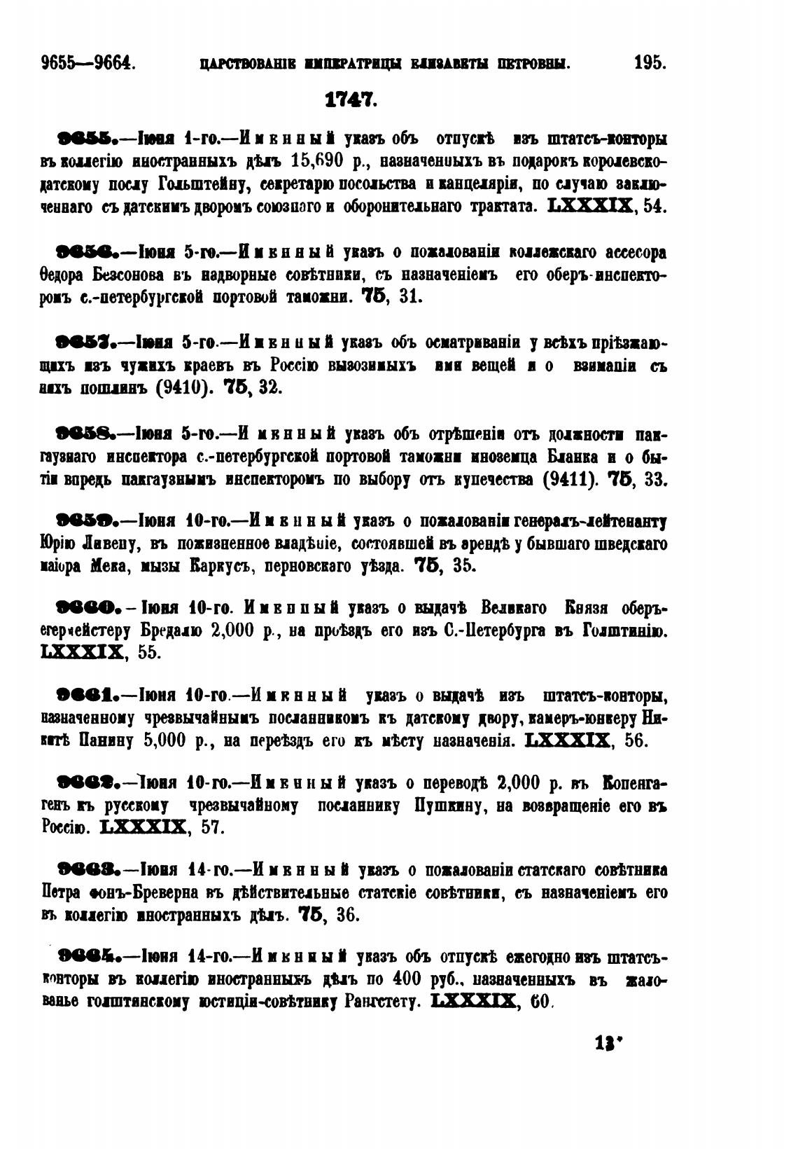 Панину 5,000 р., на перечь его rb Псту Ha3HaqeBiH. LXXXIX, 56.