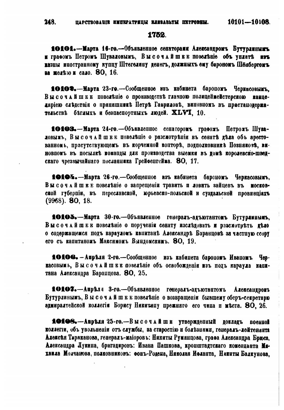 10103.—Марта 24-го.—06ъввдеаное сенатороиъ тра•охъ Петроиъ Шуи-