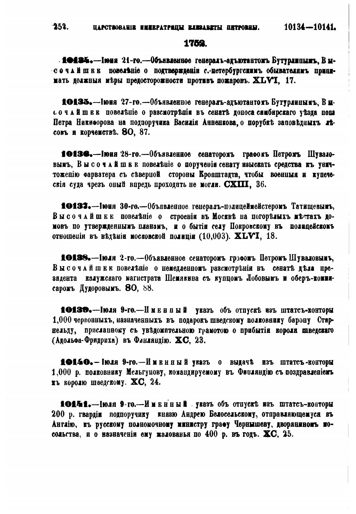 101В.—1юая 2-го.—0бъяменное сенатороиъ гршо•ъ Петкюиъ Шуваловыиъ,