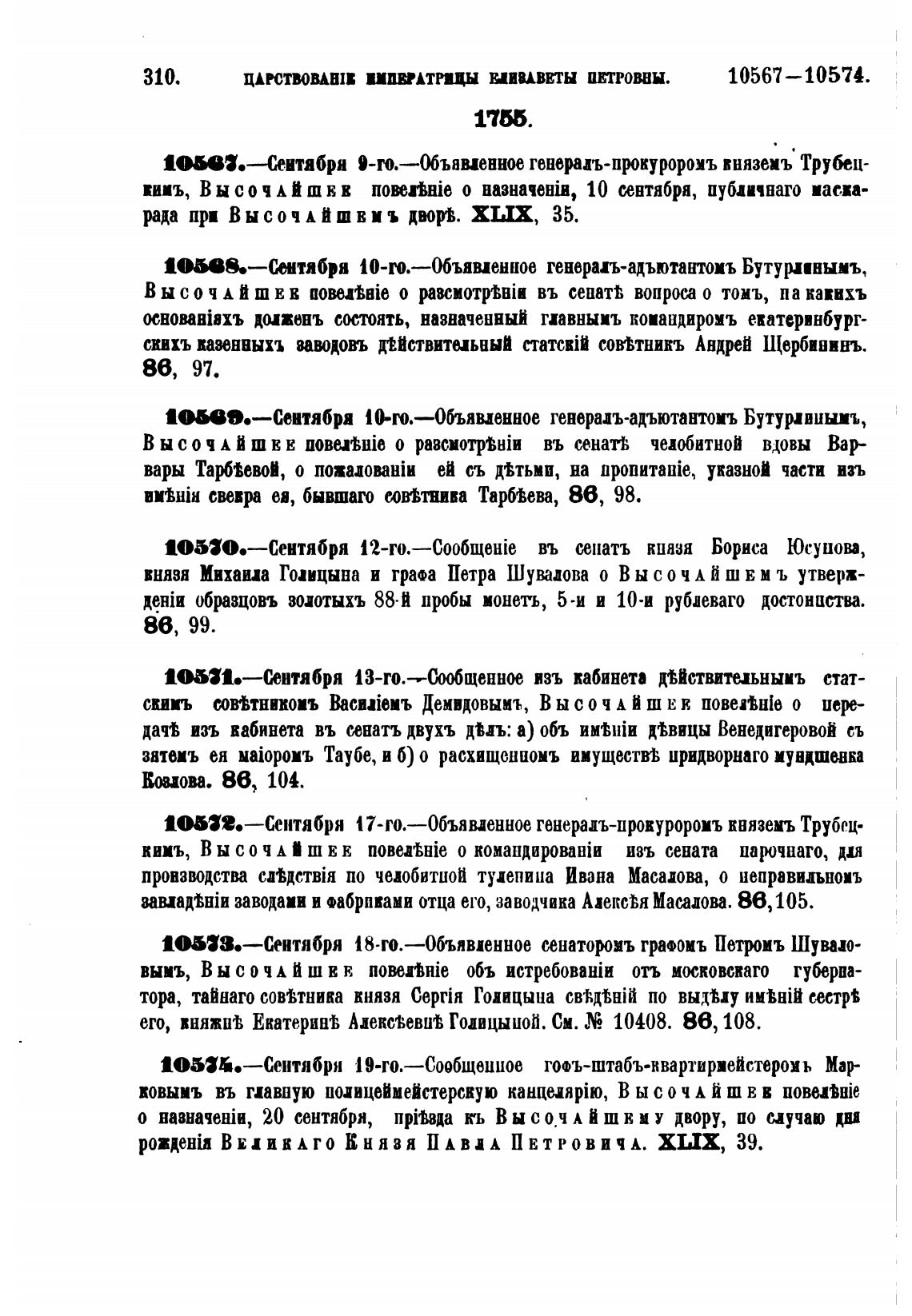 10573.—Сентября 18-го.—0бъявденное сенатороиъ гра•омъ Петроиъ Шуваш-