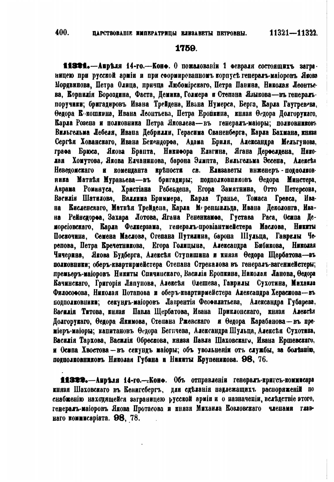Карп Розена и поповника Петра Яковлева—въ генериъ-ма\оры; подвовивкоо