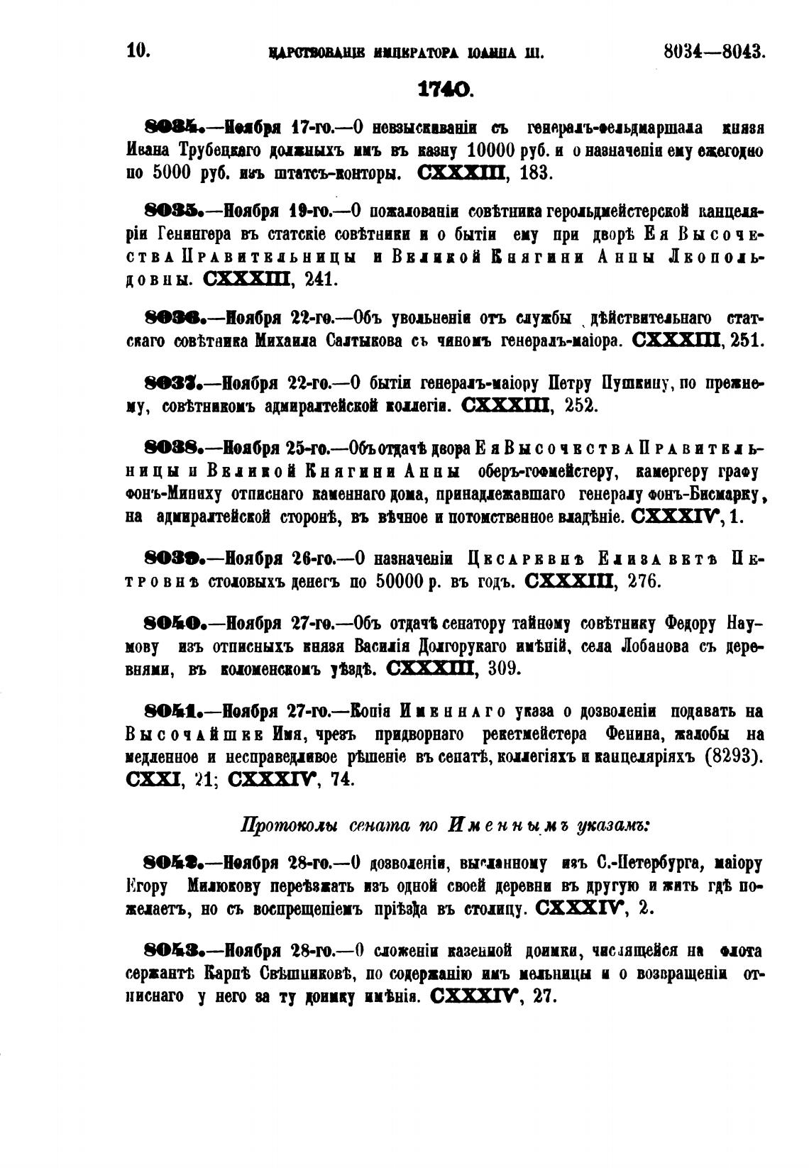 Протоколы сената по Иж е н н ы ж б указам: