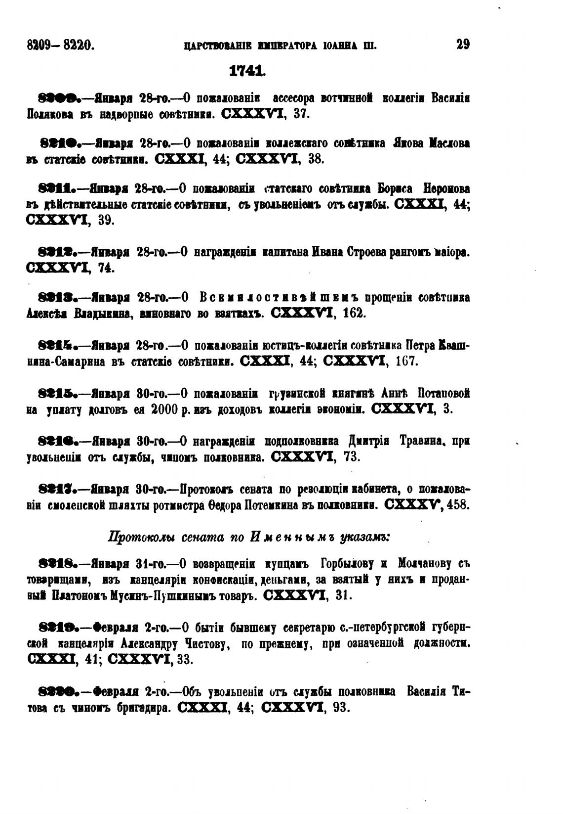8ИЗ.—анваря 30-го.—Протовогь сената по революији кабинета, о пожалова-