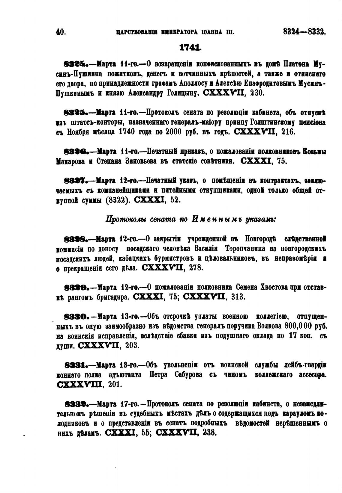 11-го.—Протовоаъ сената по кабинета, объ отшум