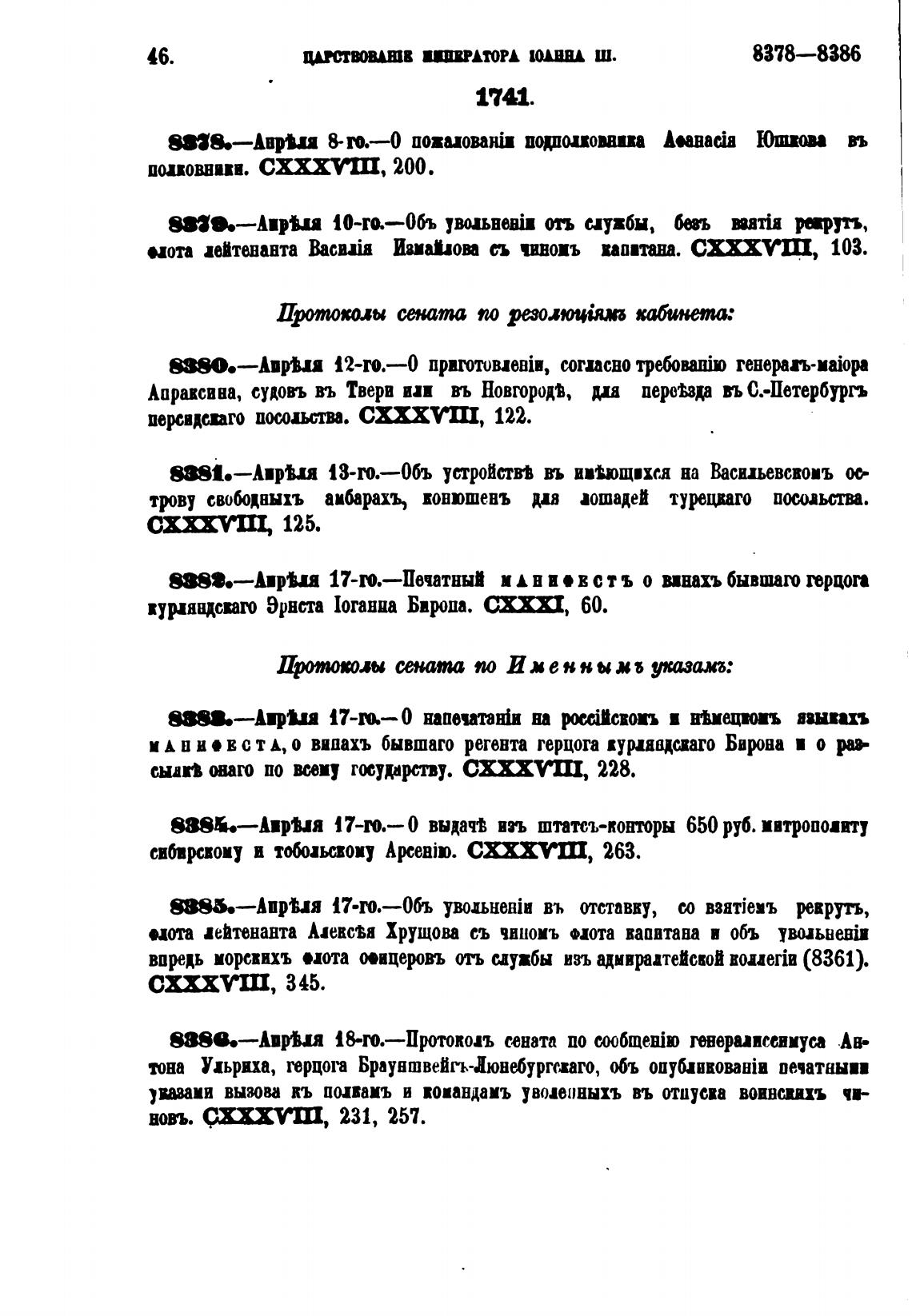 и А в и • вс о випахъ бывшаго регента герцога куриадспго Бира и о р