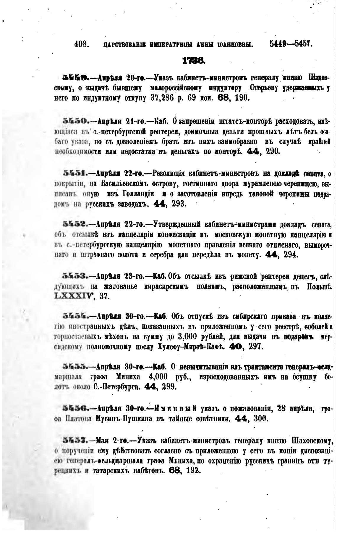Мусинъ-Пушкина въ тайные сювмниии. 44, 300.