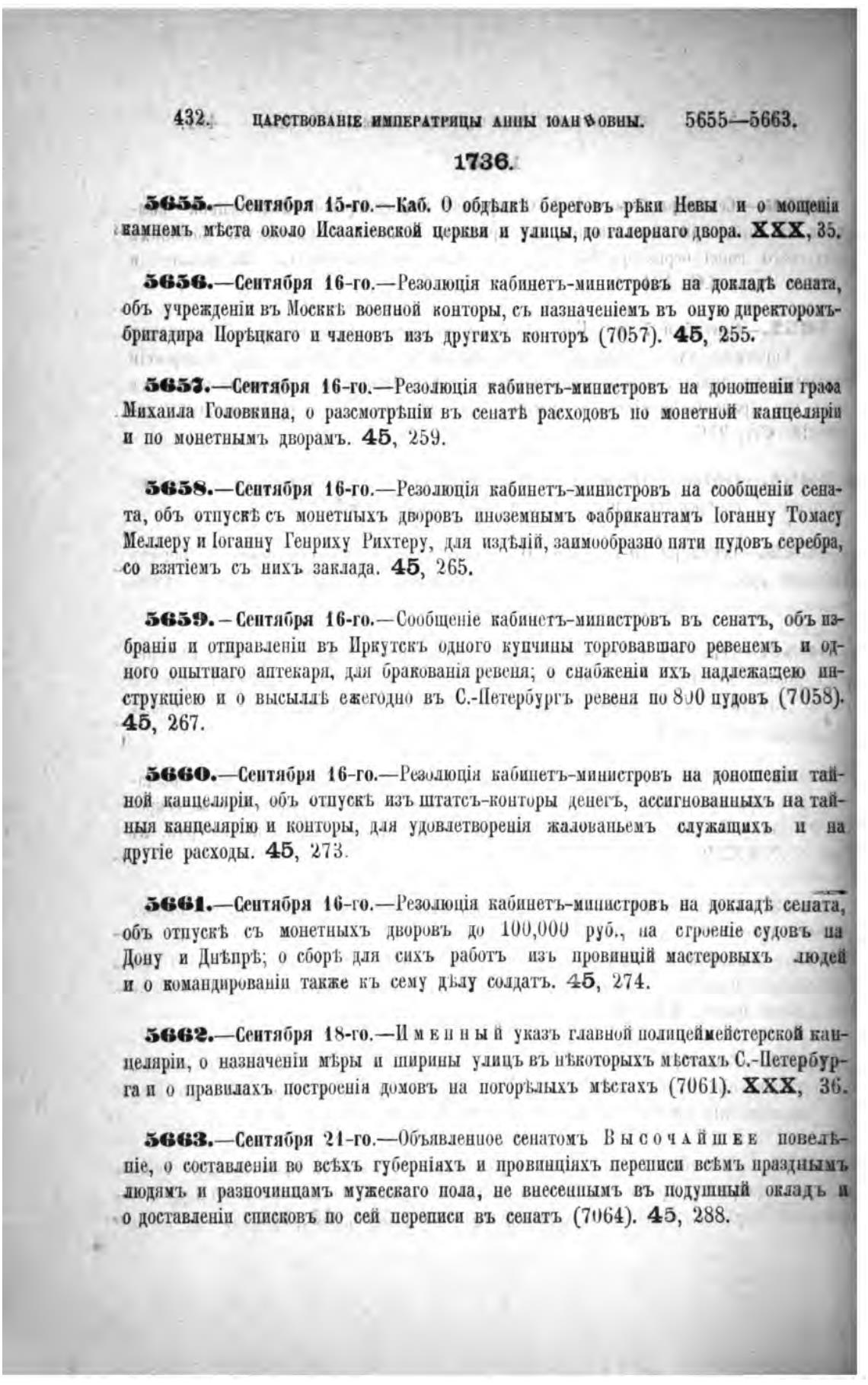 432.; ИМПЕРАТРИЦЫ Анны ШЛИЪОВНЫ. 5655=—6663.