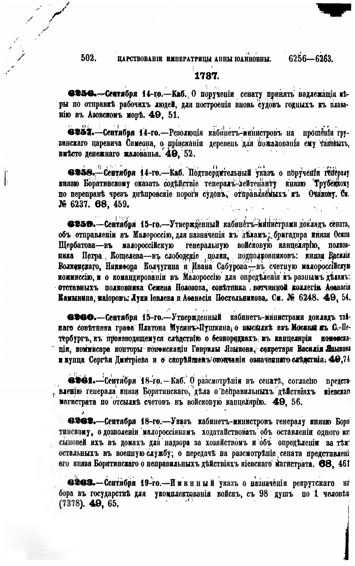 ЦАРСТВОВАВШ ИПЕРАТРИЩ АННЫ ШДННОВНЫ. 6256—6263.
