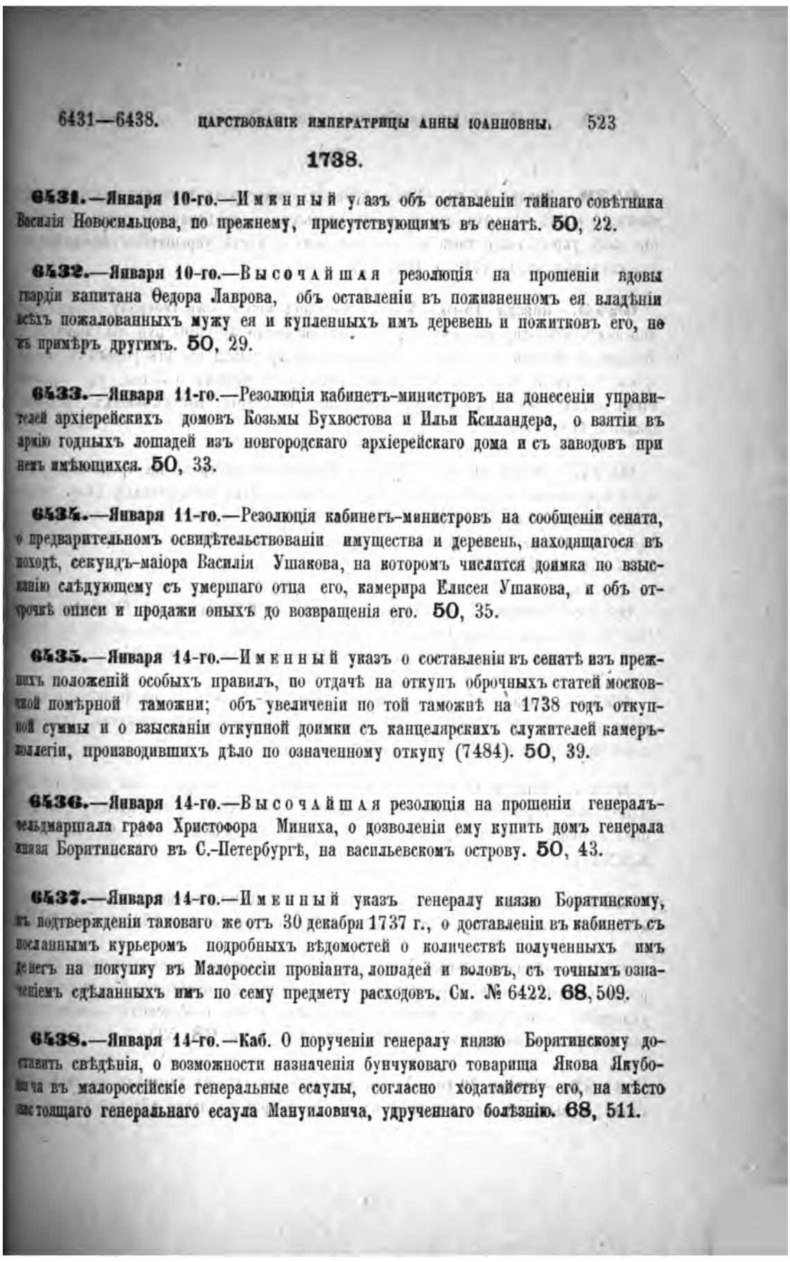 6431—6438. ЦАРСТВОВАВТК ИМПЕРАТРИЦЫ АННЫ ШМШОВНЫ. '523