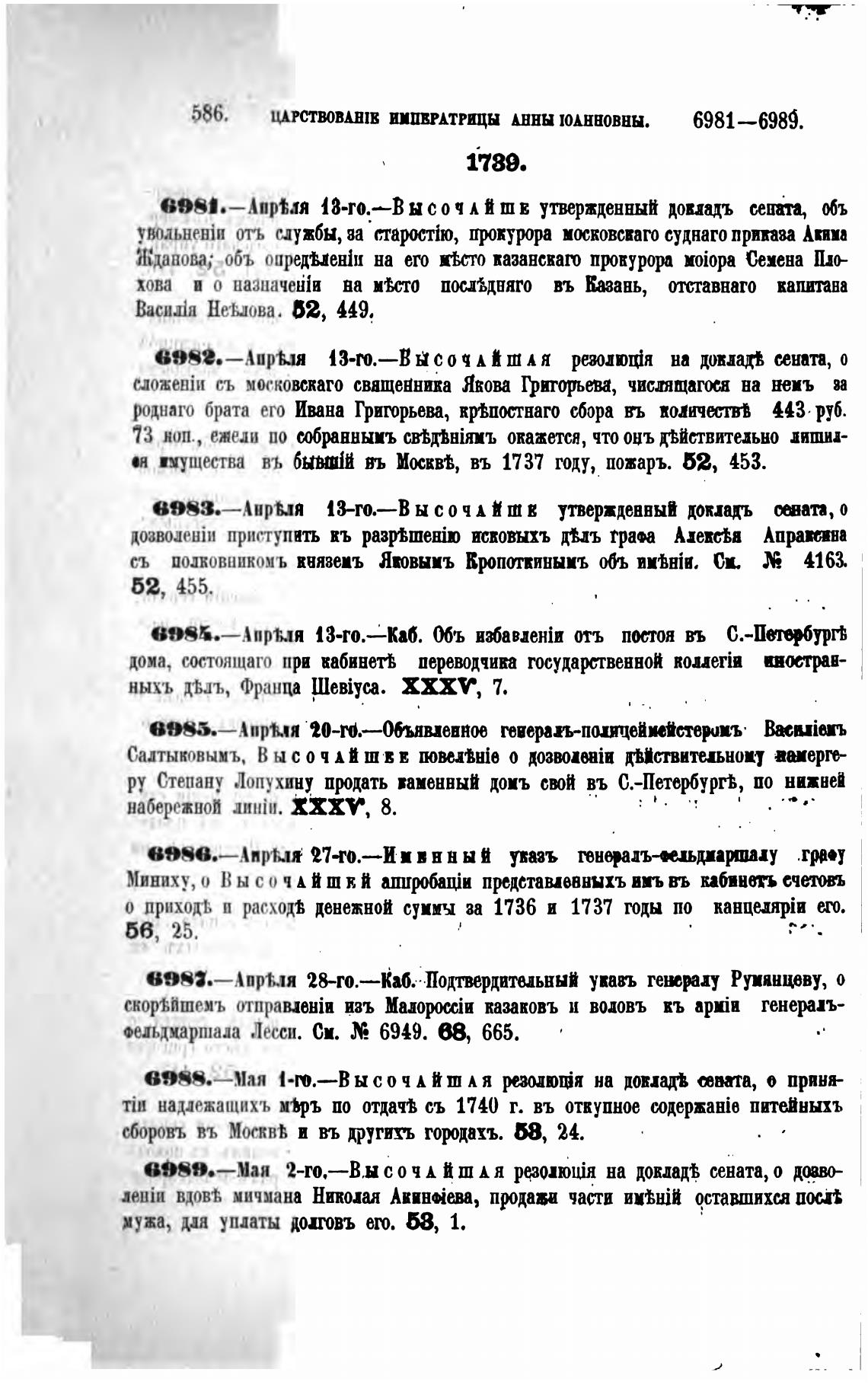 Миниху, о В ы с о ч й ш в й апирбаји предетавпвннхъ во ть кабиивть ечетовь