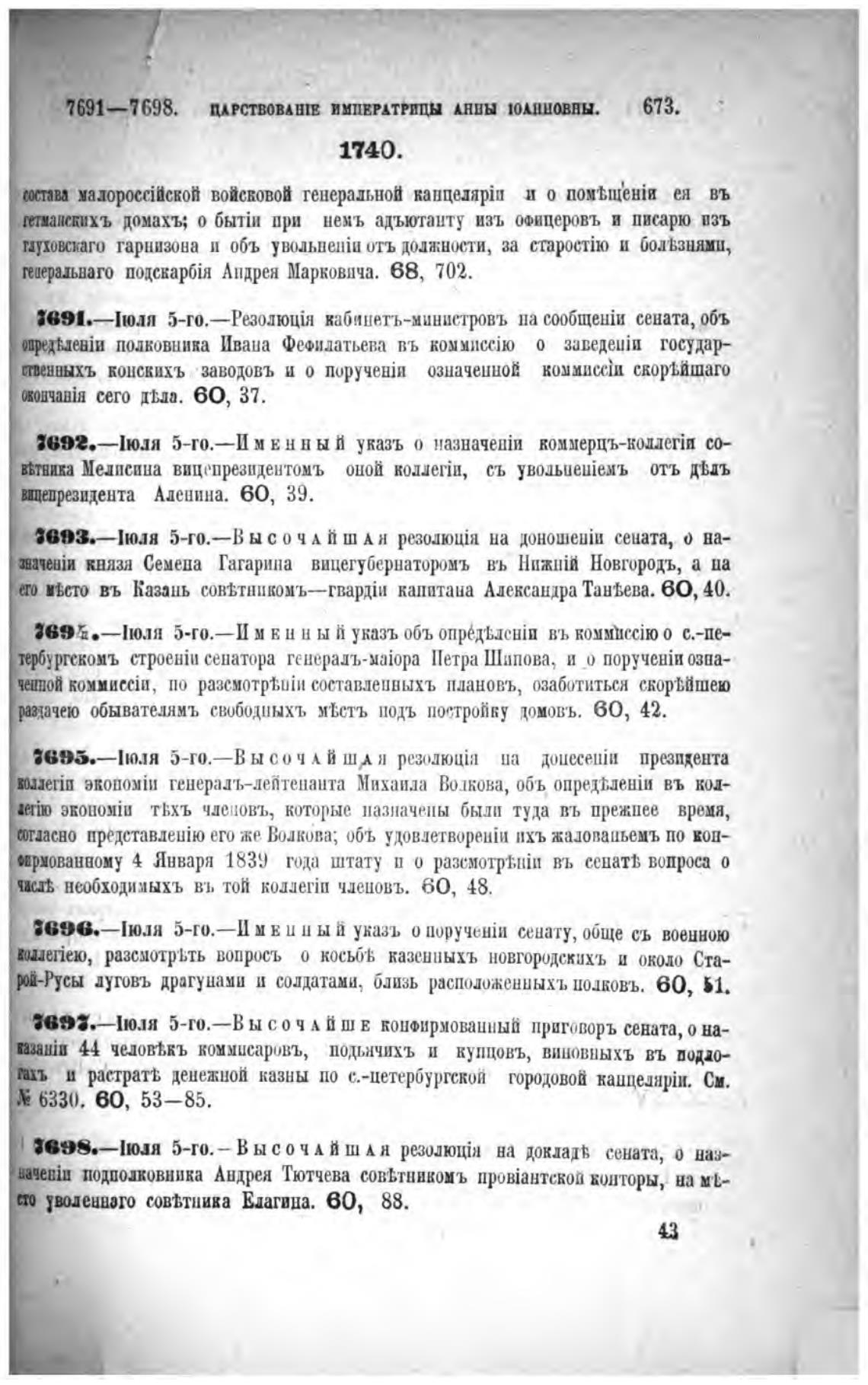 7691—7698. ДАРСТВOВАнтв ИМПЕРАТРИЦЫ Анны ТОМШОВНЫ. , 673.