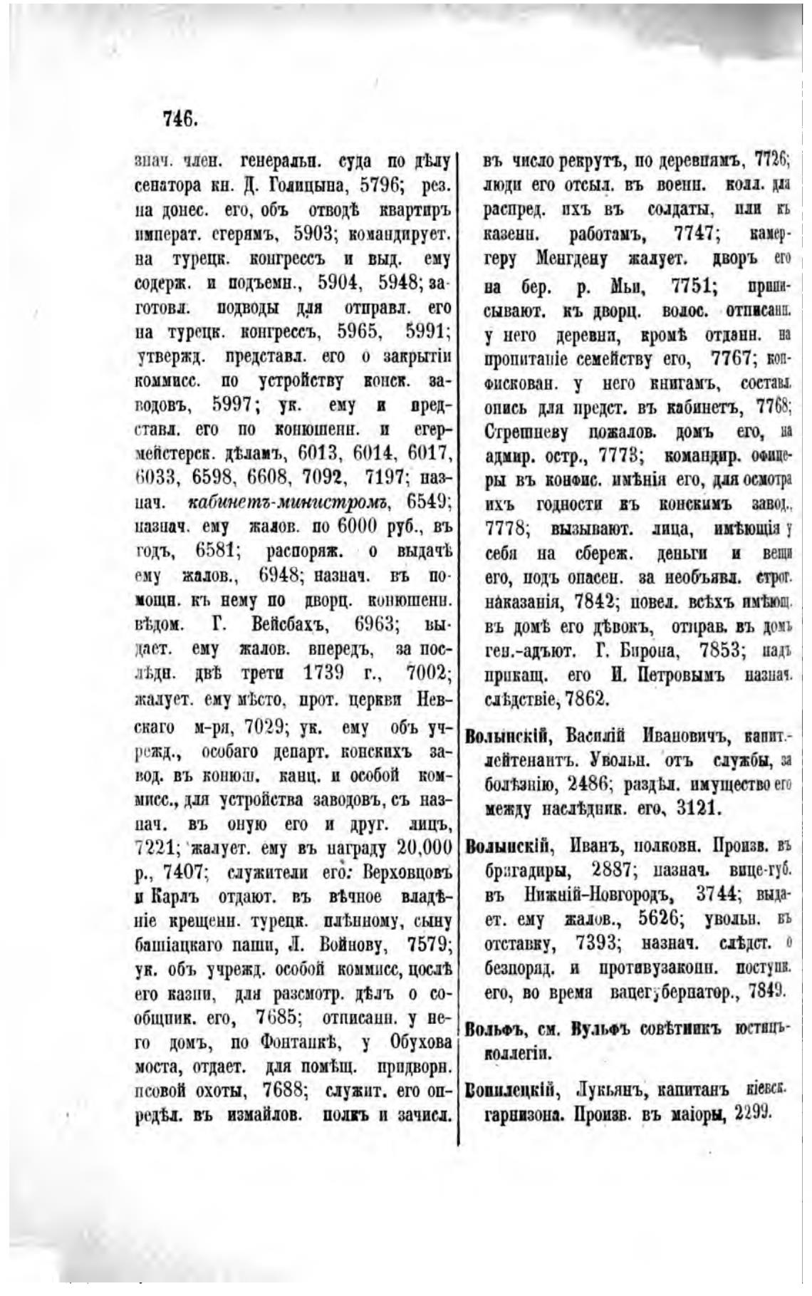 7221; жалует. ему въ награду 20,000 Волынск1й, Иванъ, полКовн. Произв.