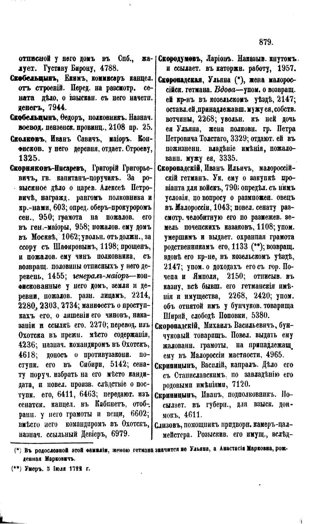ciiCR. гетмана. ВДова—упом. о возвращ.