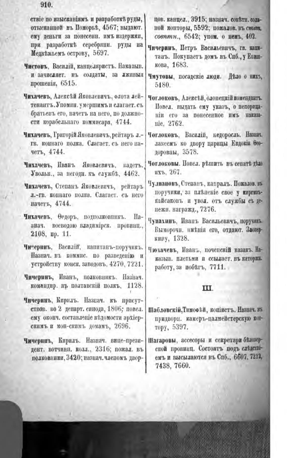 Чичеринъ, Иванъ, подковникъ. Назпач.