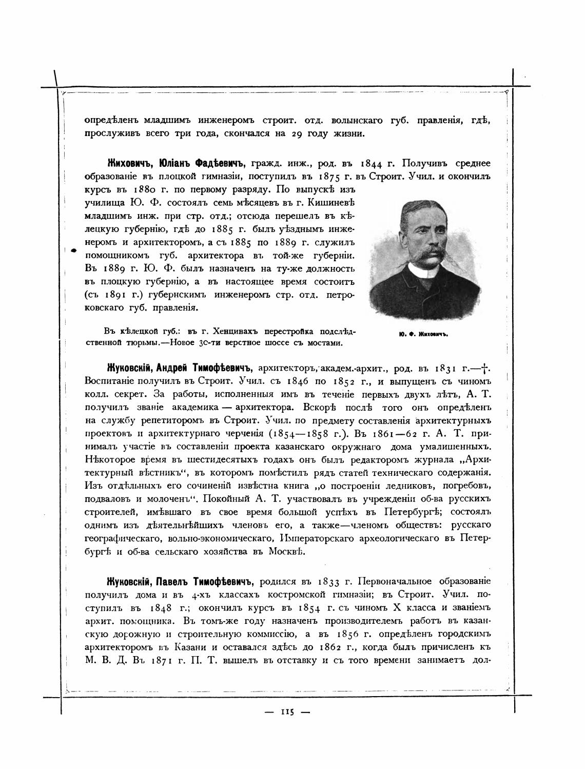 Жиховичъ, ЮлЮнъ Фад%евичъ, гражд. инж., рд. въ 1844 г. Получивъ