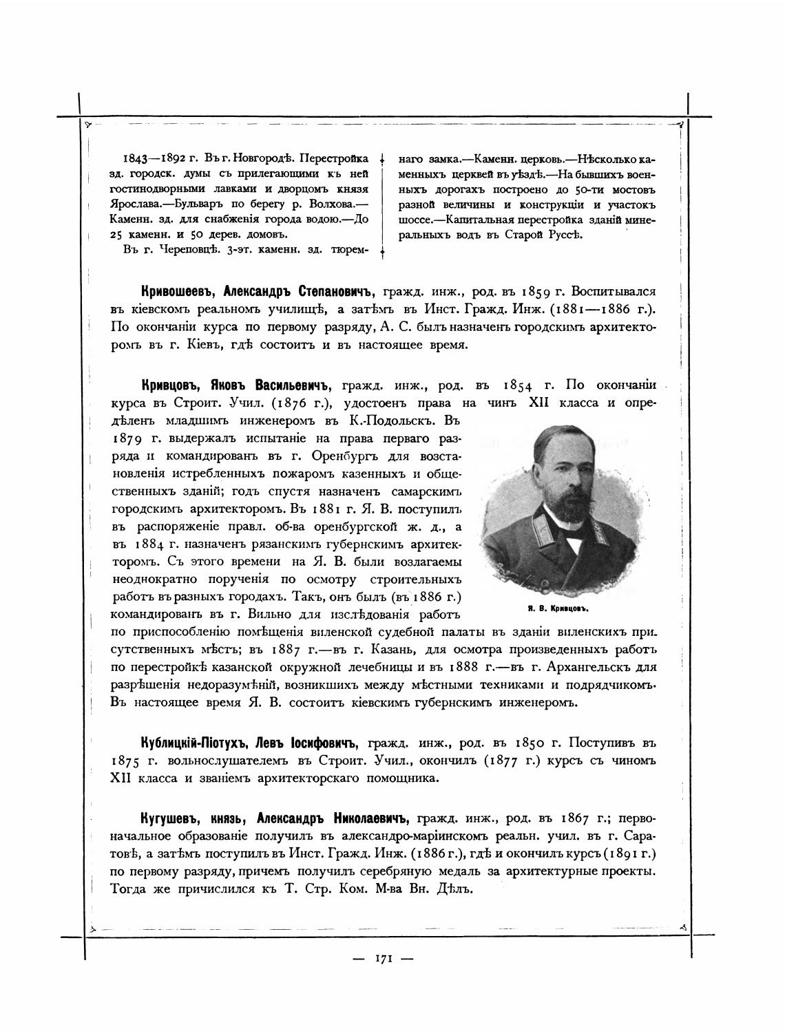 Кривцовъ, Яковъ Васильевичъ, гражд. инж., рд. въ 1854 г. по