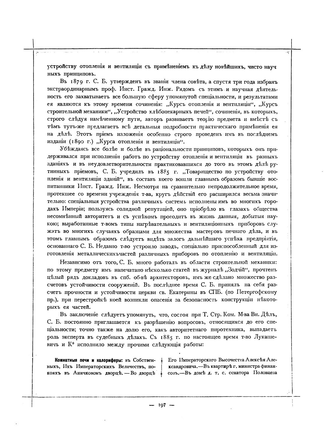 Независимо отъ того, С. Б. много работалъ въ области строительной механики: