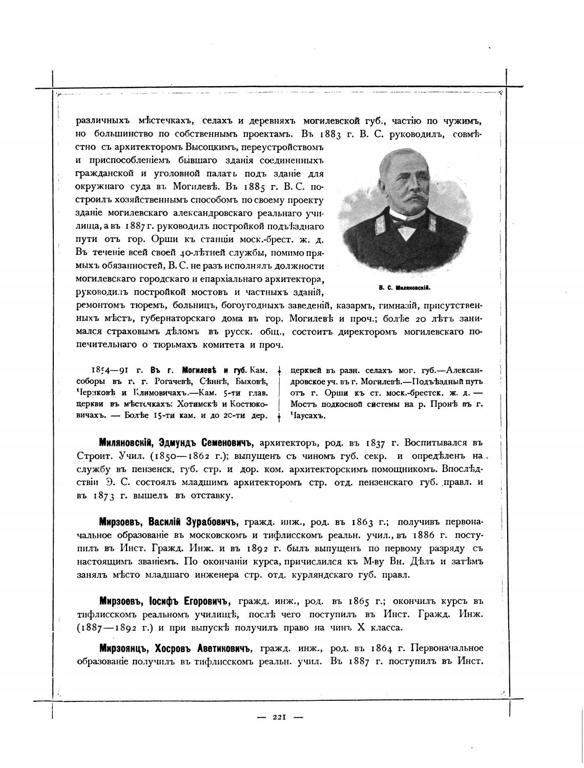 Миляновс»ИЙ, Эдмундъ Семеновичъ, архитекторъ, рд. въ 1837 г. въ