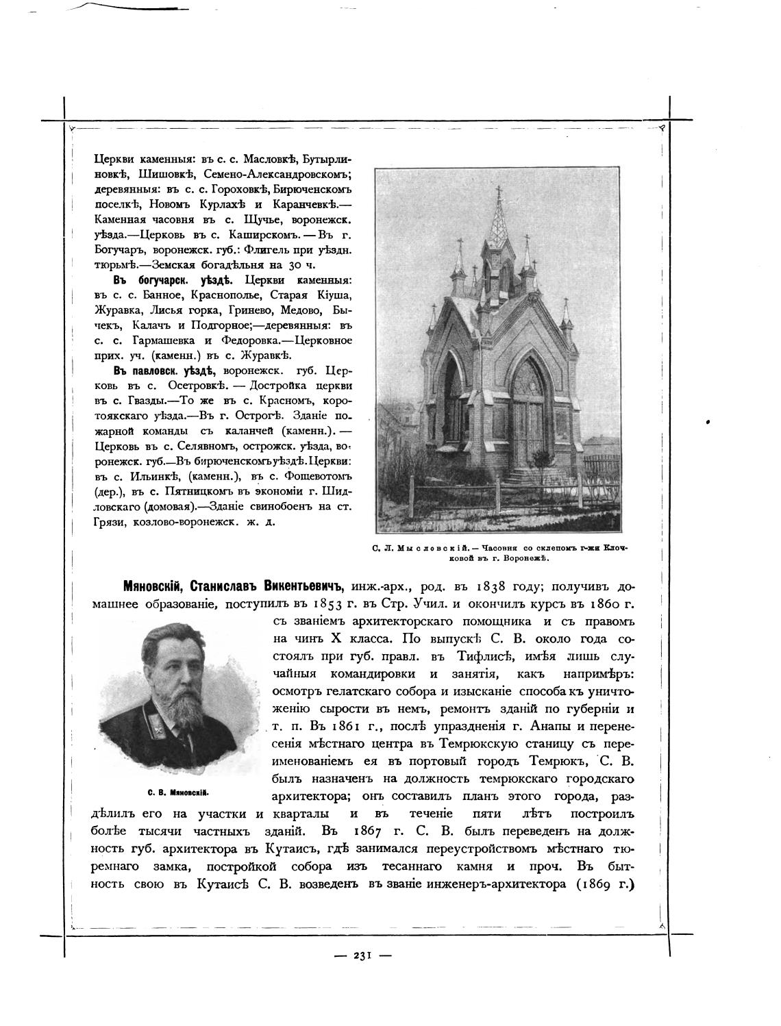 MRHOBCkii, Станиславъ Викентьевичъ, инж.-арх., род. въ 1838 году; получивъ до-