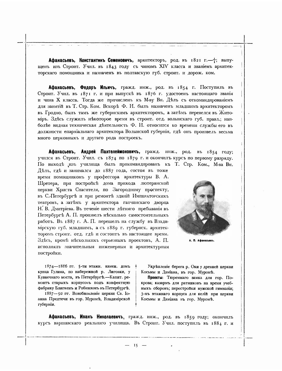 Афанасьевъ, Андрей Пантелеймоновичъ, гражд. ипж., род. въ 1854 году;