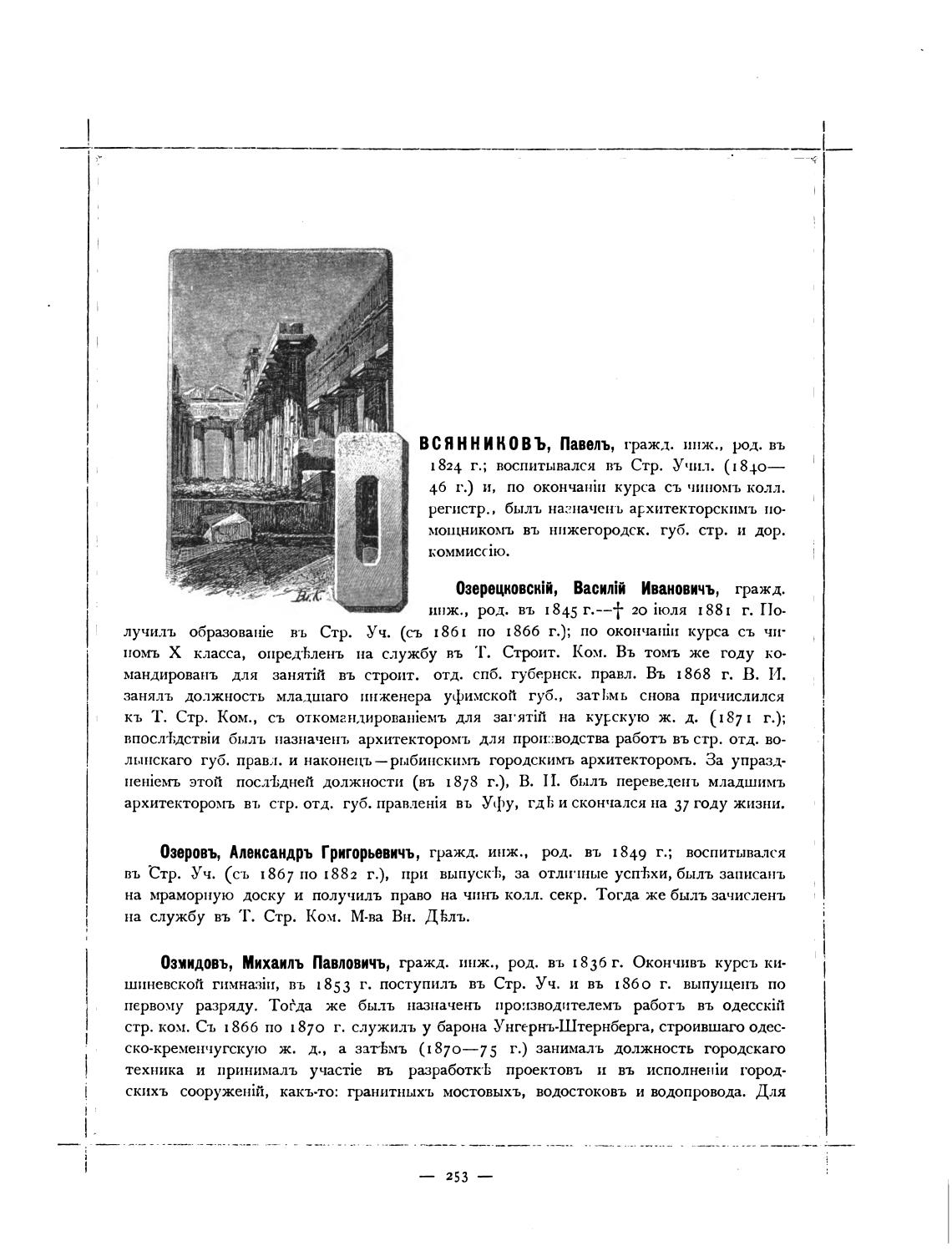 Озеровъ, Александръ Григорьевичъ, гражд. инж., род. вт. 1849 г.; воспитывался