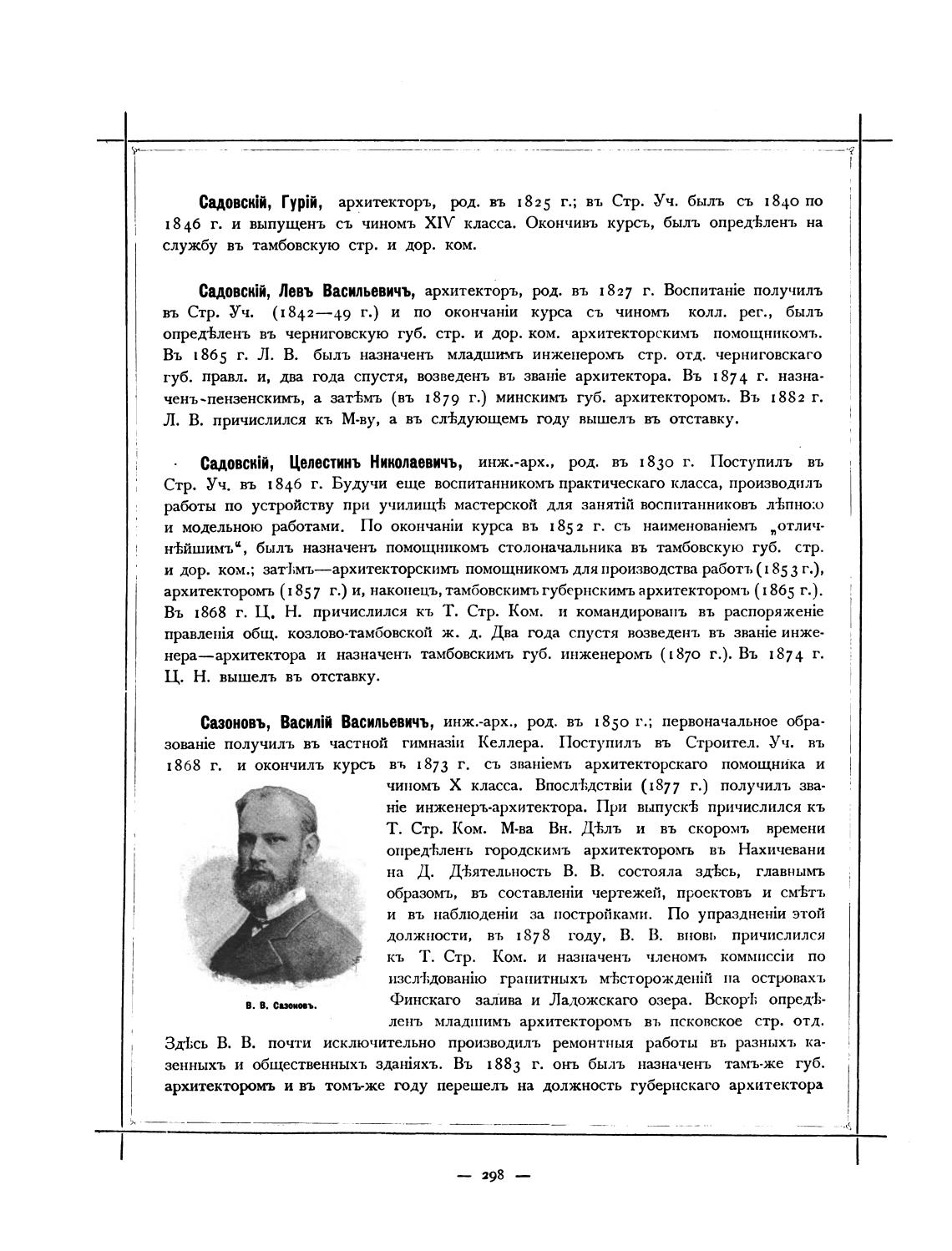 Сазоновъ, ВасилТ Васильевичъ, инж.-арх., g. въ 1850 г.; первоначальное Мра-