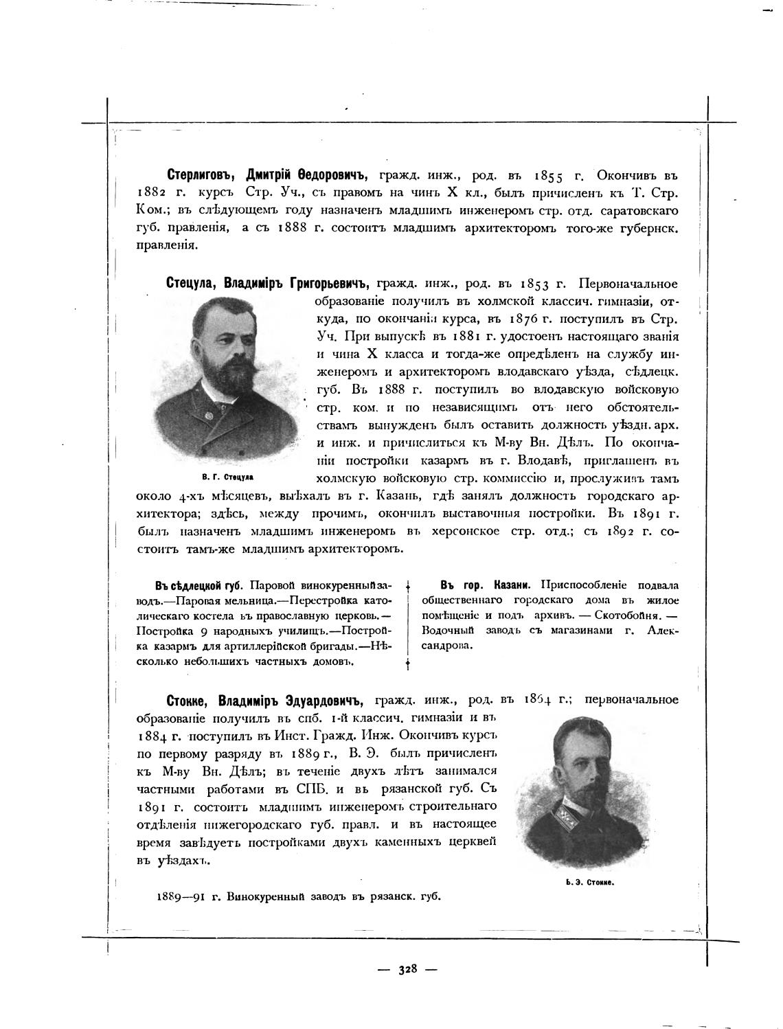 Стецула, ВладиЈръ Григорьевичъ, гражд. инж., род. въ 1853 г. Первоначальное