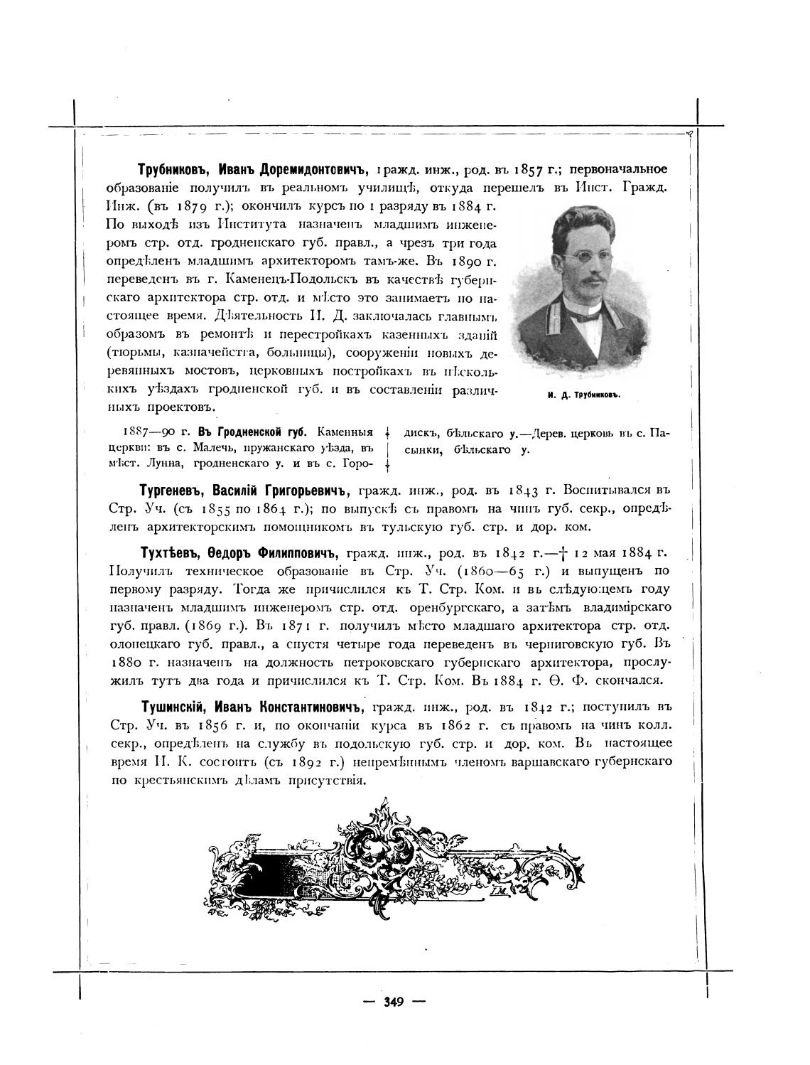 Трубниковъ, Ивань Доремидонтовичъ, 1 ражд. инж., род. вт. 1857 г.; первоначальное