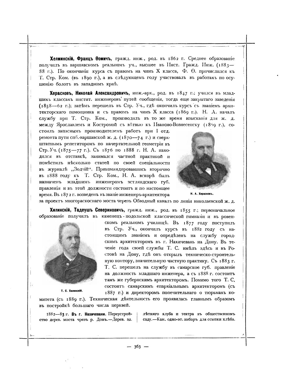 XHMBHCkii, Францъ еомичъ, гражд. инж., род. въ 1862 г. Среднее (fpa30BaHie