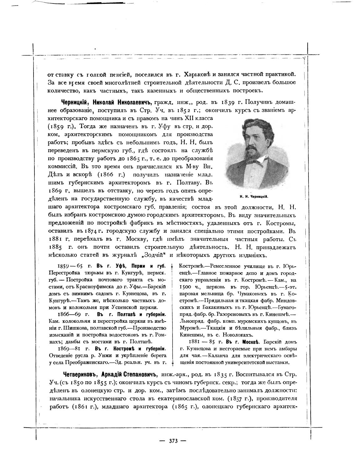 Чернитй, Николай Николаевичъ, гражд. инж., род. въ 1839 г. Получивъ домаш-