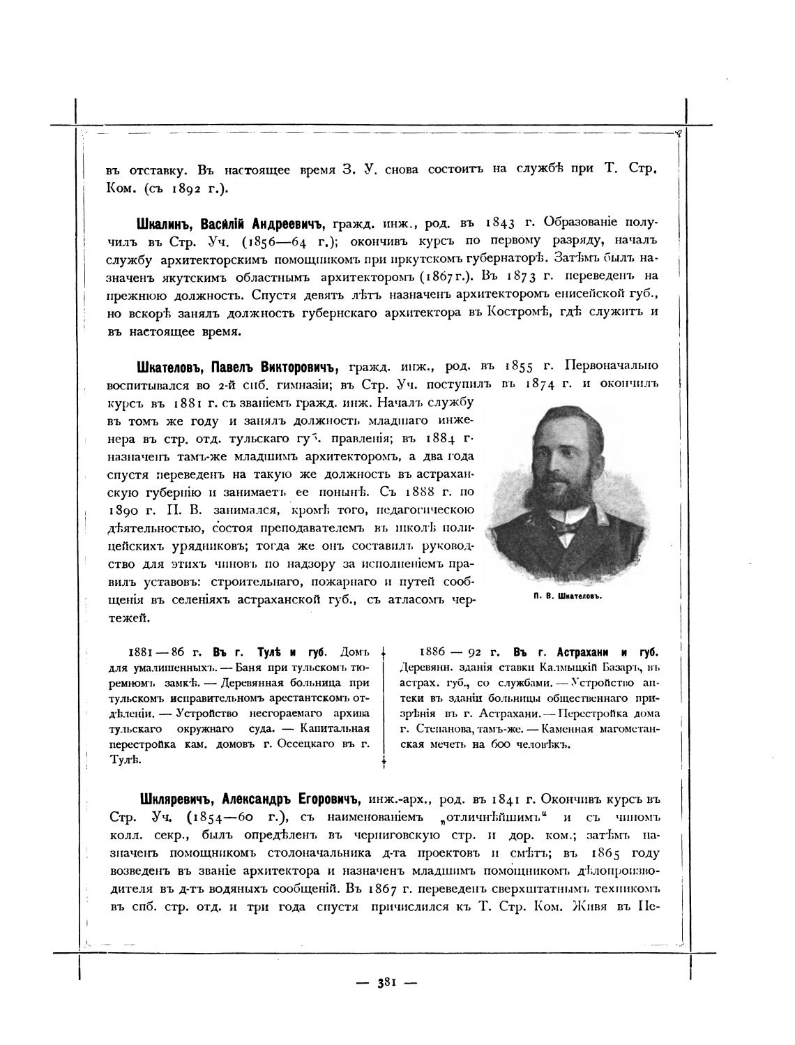 Шкателовъ, Павель Викторовичъ, гражд. инж., 8. въ 1855 г. Первоначально