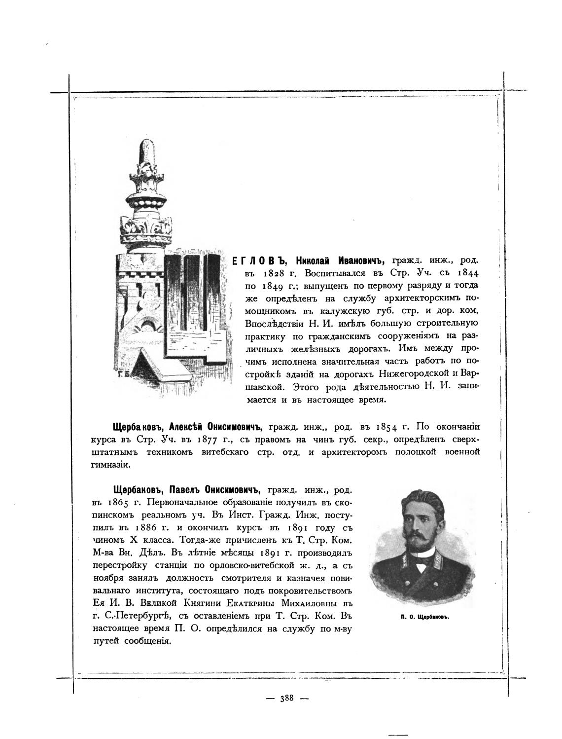 Е Г Л О В Ъ, Николай Ивановичъ, гражд. инж., рд.