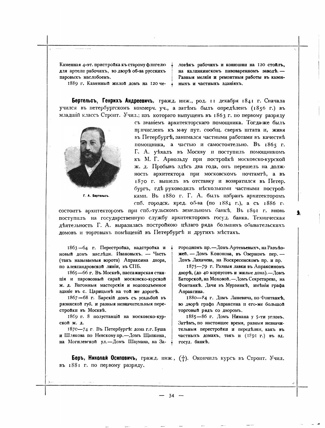 Бертельсъ, Генрихъ Андреевичъ, гражд. инж., рд. декабря 1841 г. Сначала