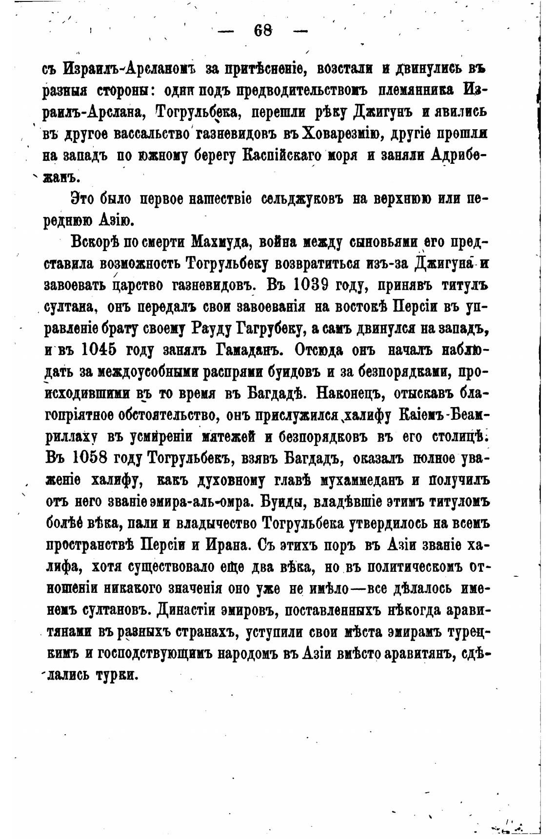 Въ 1058 году Тогрульбевъ, взявъ Вагдадъ, оказалъ полное ува-