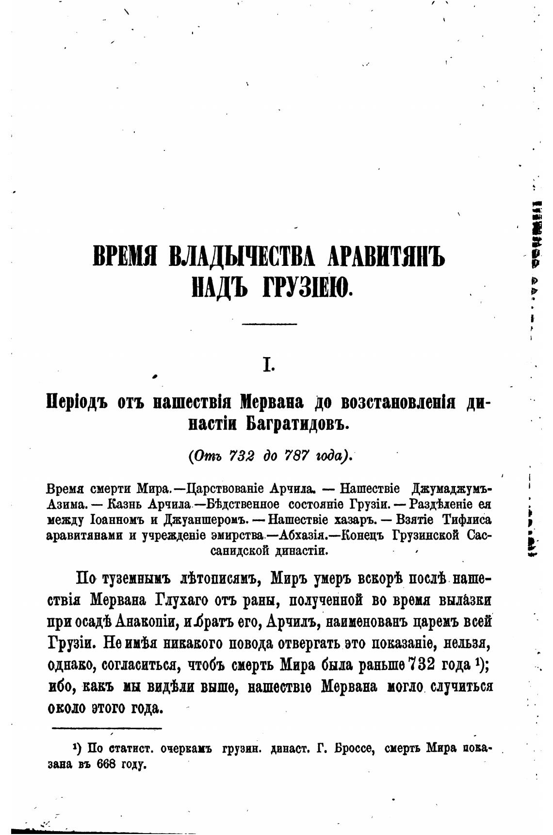 1) По статист. очервацъ грузин. династ. Г. Броссе, смерть Мира пова-