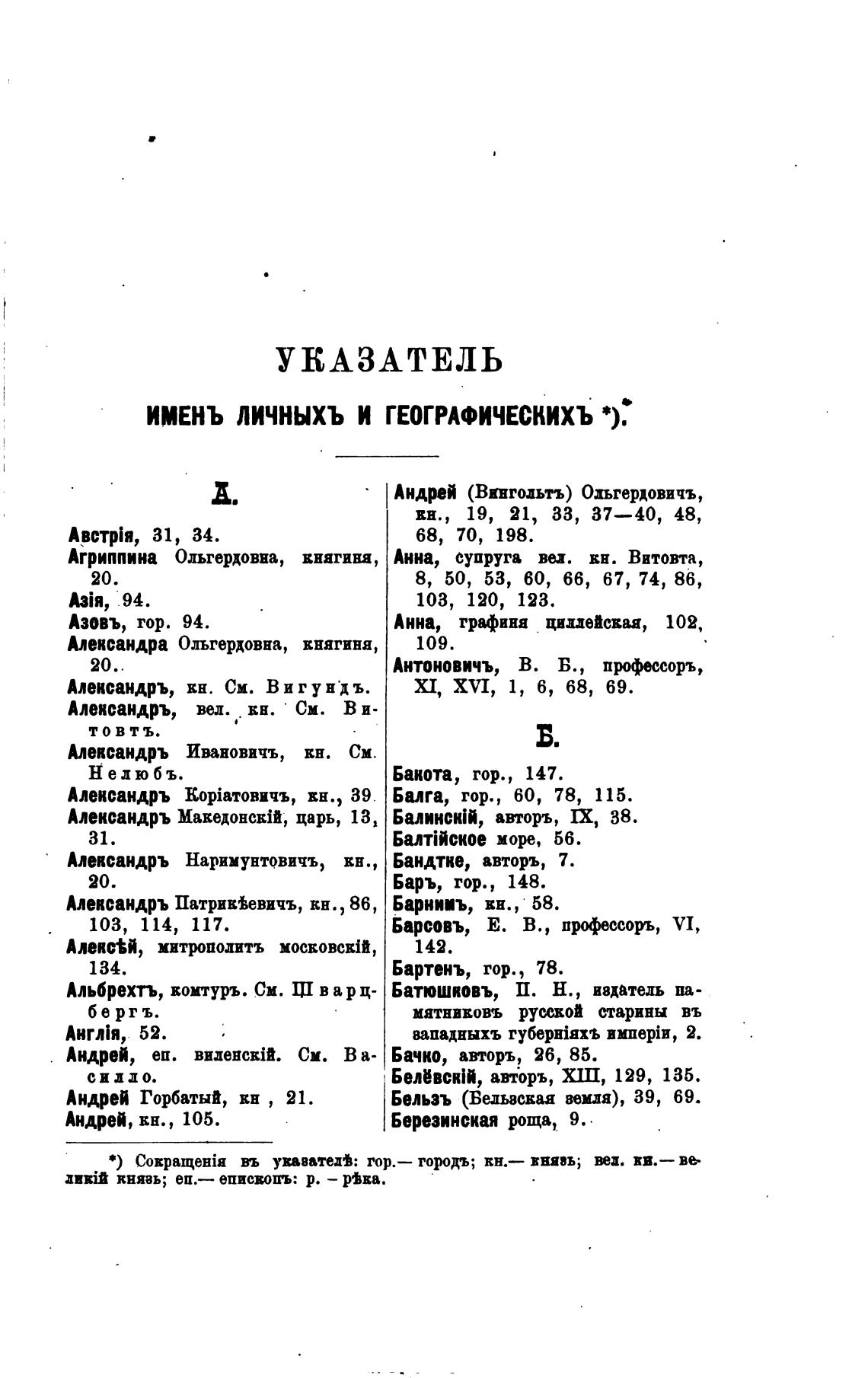 *) уваватем: гор.— городъ; Кн.— внявы, вв.— въ