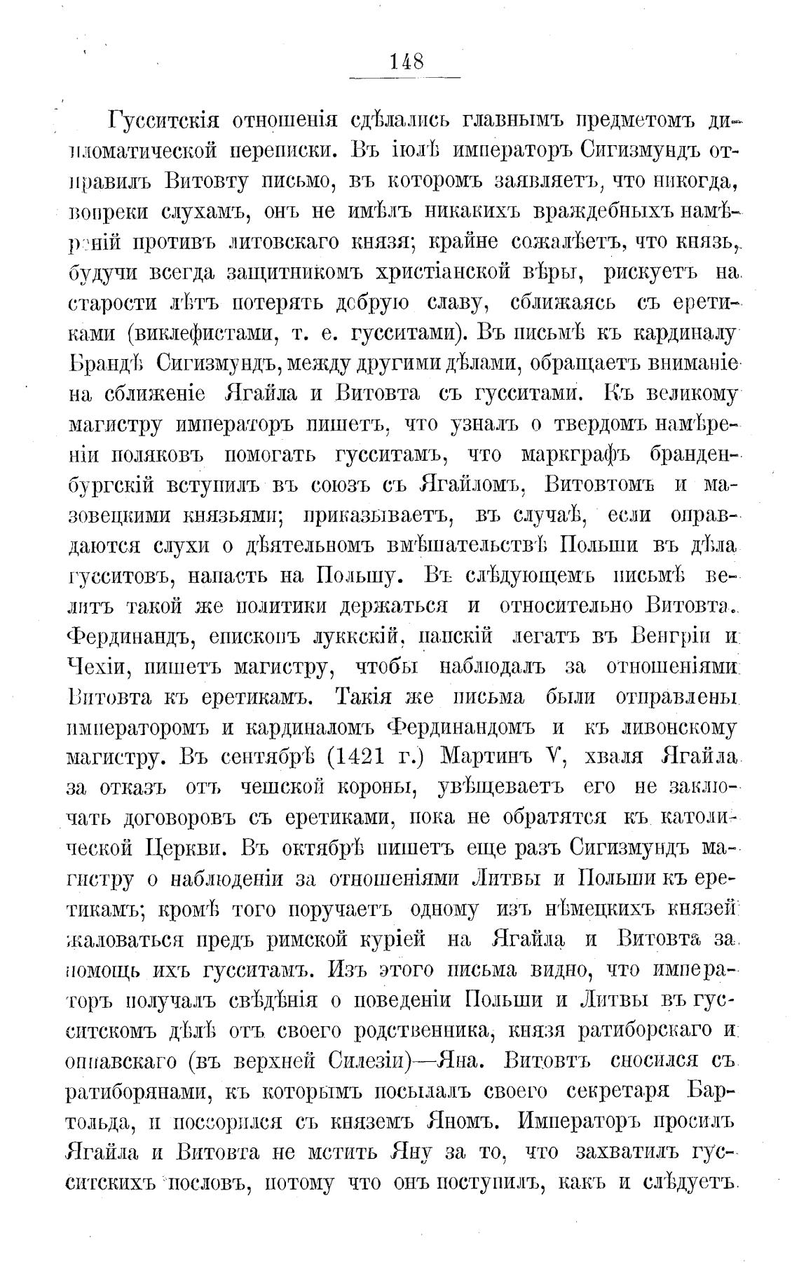 магистру. Въ сентябреЬ (1421 г.) Мартинъ У, хваля Ягайла