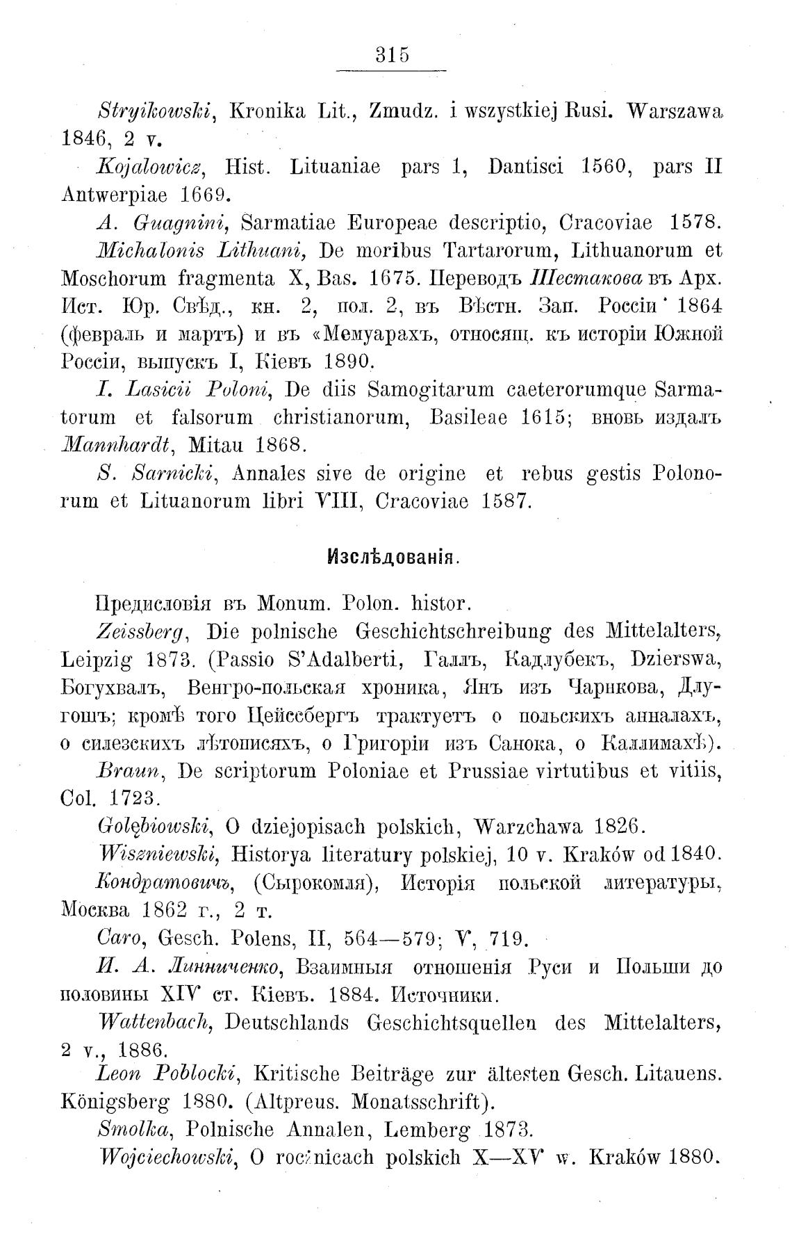 Golebiowski, О dziejopisach polskich, Warzchawa 1826.