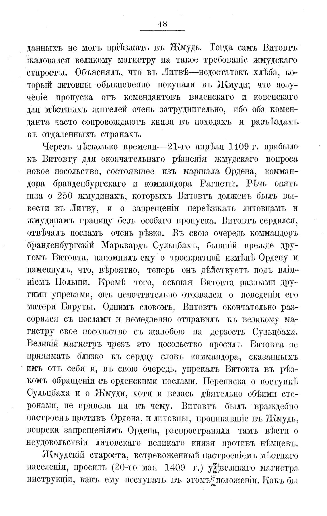 жмудинамъ границу безъ особаго пропуска. Витовтъ сердился,
