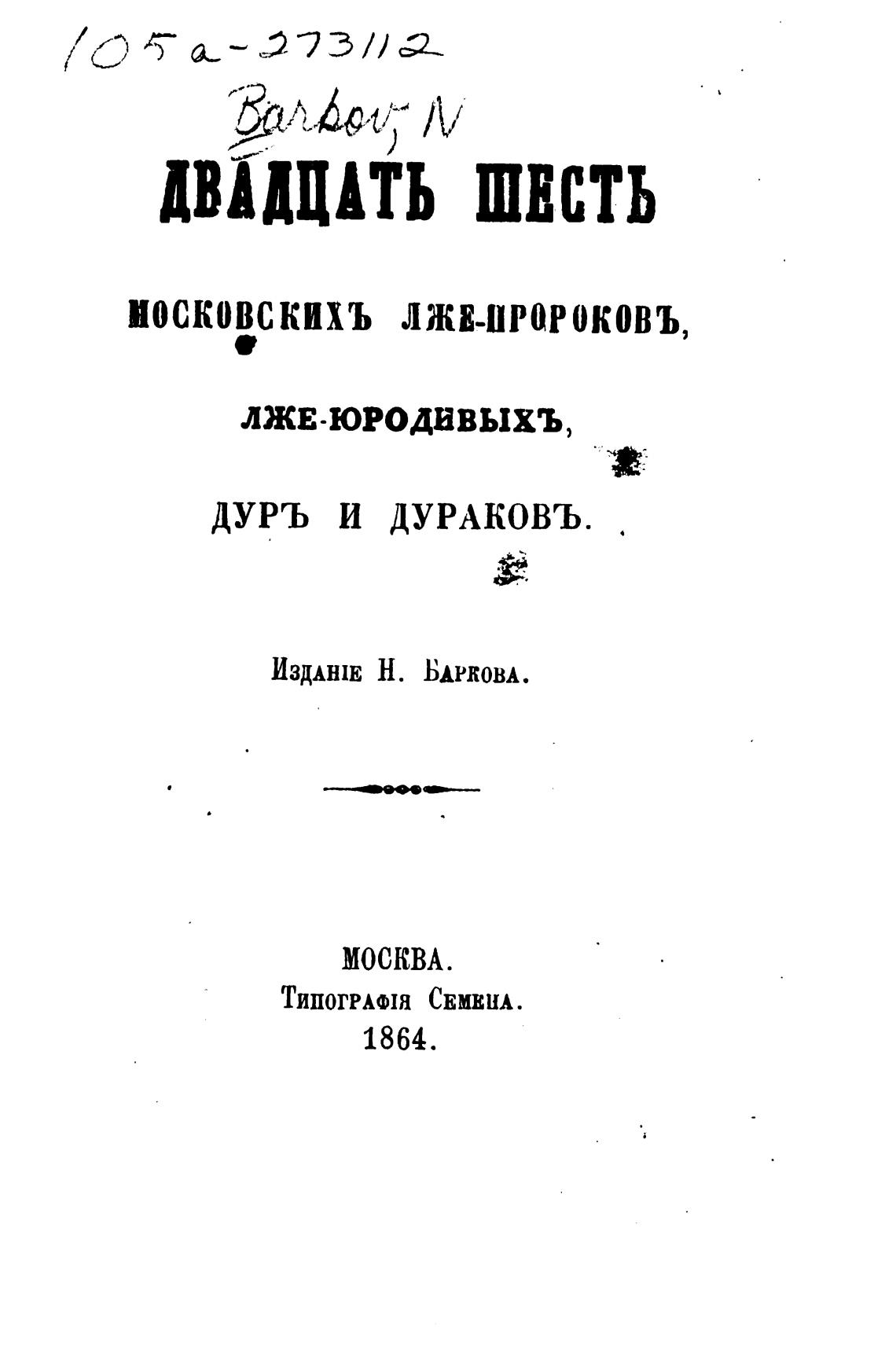 МОСКОВСКИХЪ ЛЖВ-ПРОРОКОВЪ,