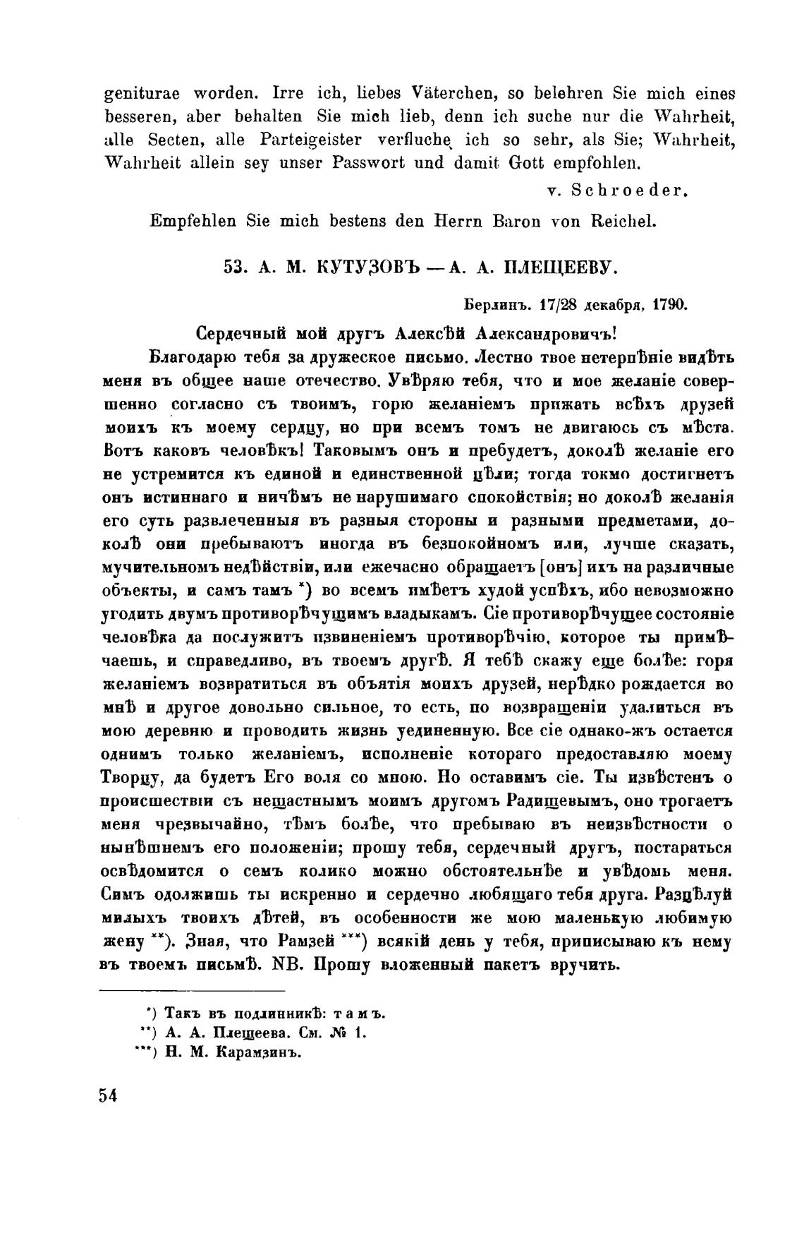 53. А. М. КУТУЗОВЪ —А. А. ПЛЕЩЕЕВУ.
